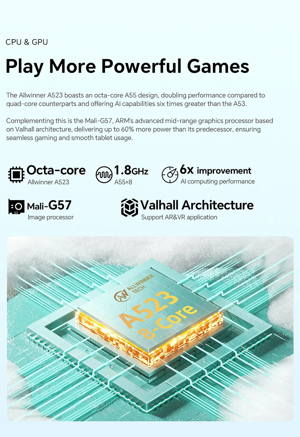 The P30 tablet, powered by the Allwinner A523 CPU, ensures robust performance for seamless multitasking and fluid operation, surpassing previous models in efficiency.