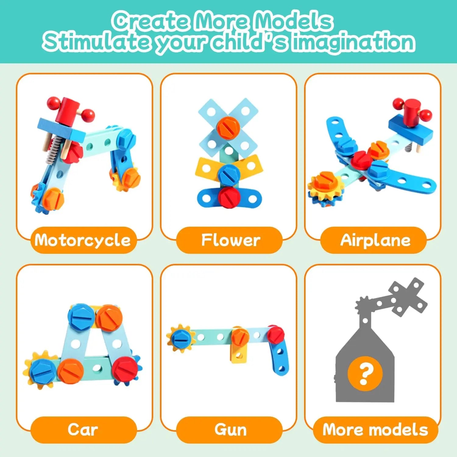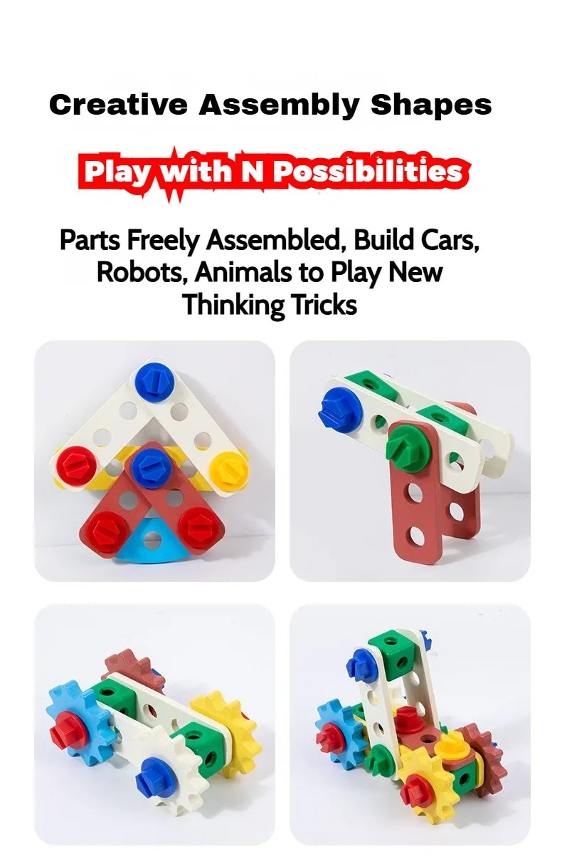 Montessori-Inspired Toys: This Montessori wooden toys encourage open-ended play and allows children to build and assemble shapes with the accessories, which allows them to fully utilize their creativity and imagination and promotes hands-on learning and independent exploration