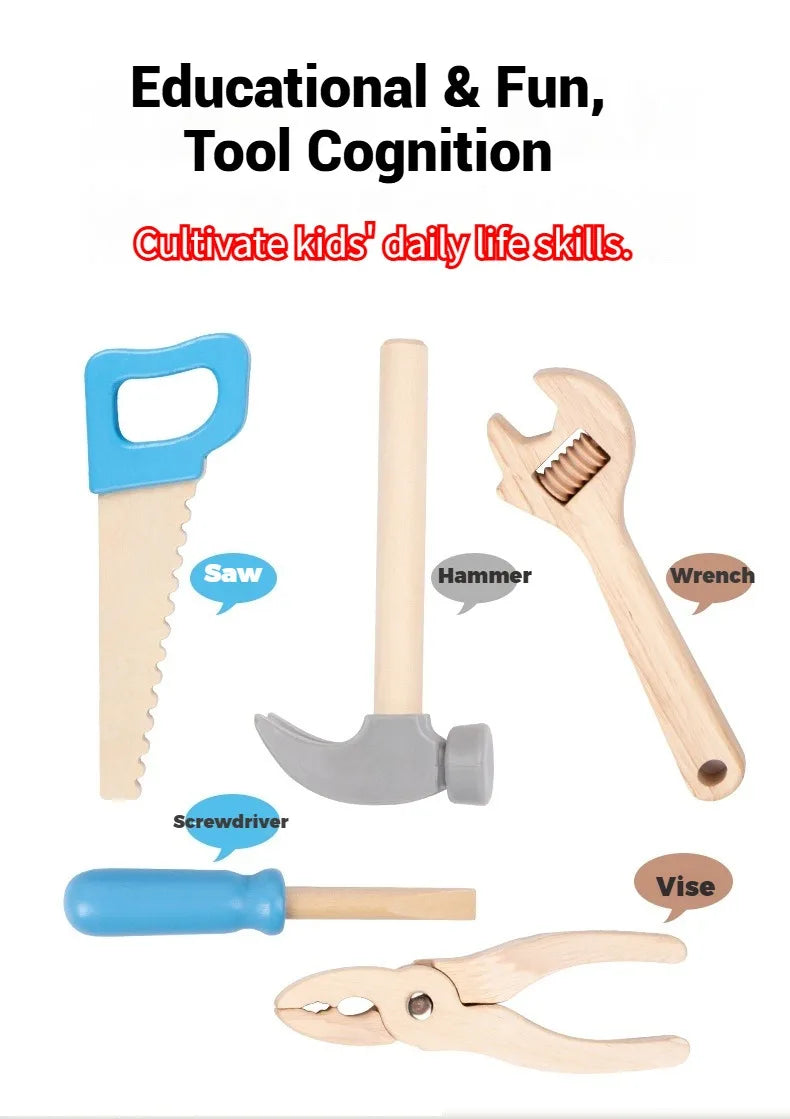 Tool Bench for Kids Toy Play Workbench Wooden Tool Bench Workshop Workbench with Tools Set Wooden Construction Bench Toy for Boy