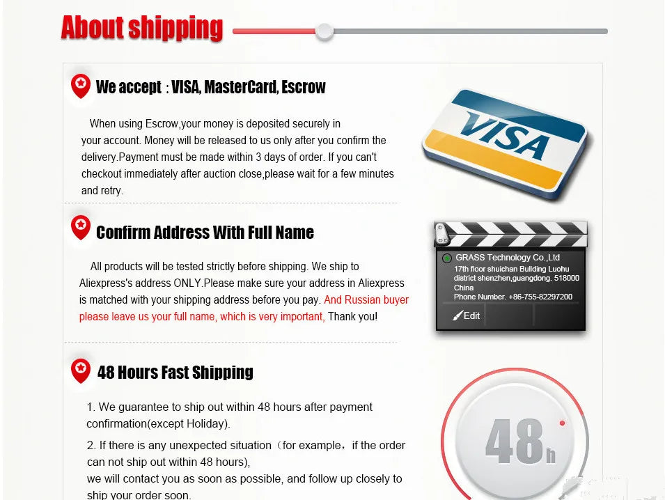 3) Product manual in English;