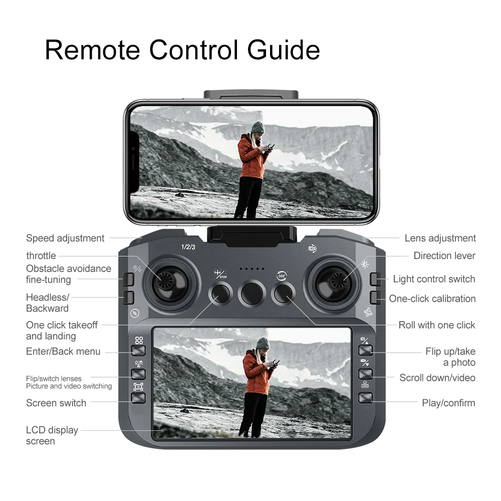 2. The remote control comes with a HD display, a 5.6-inch large screen, and lossless HD image transmission