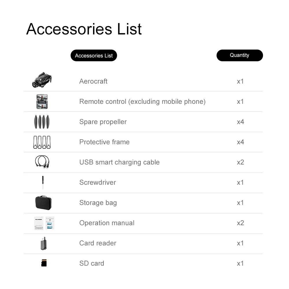 5. Intelligent tracking, surround flight, handheld control, real-time map positioning of drones, out-of-control map planning routes, APP mobile phone control, one-key return, headless mode, rise and fall, forward and backward, left and right side flight.