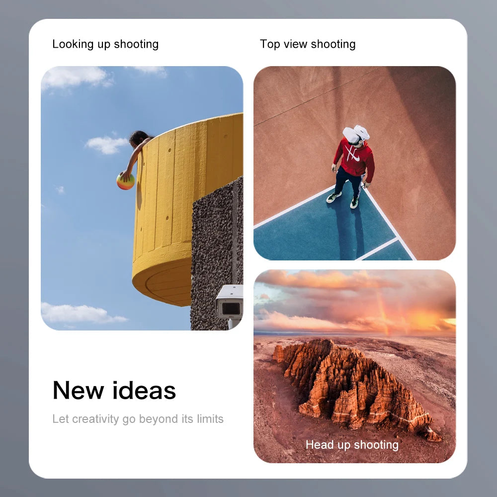 1. Front wide-angle HD WIFI lens, equipped with optical flow positioning HD lens at the bottom. The servo gimbal design improves stability, and adds EIS electronic image stabilization to make the shooting clearer