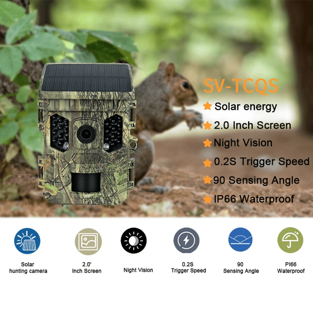 Wildlife Camera Solar Energy Trail Cam 4K with 1080P Night Vision Waterproof BT WiFi APP 16MP Game Camera with Motion Activation
