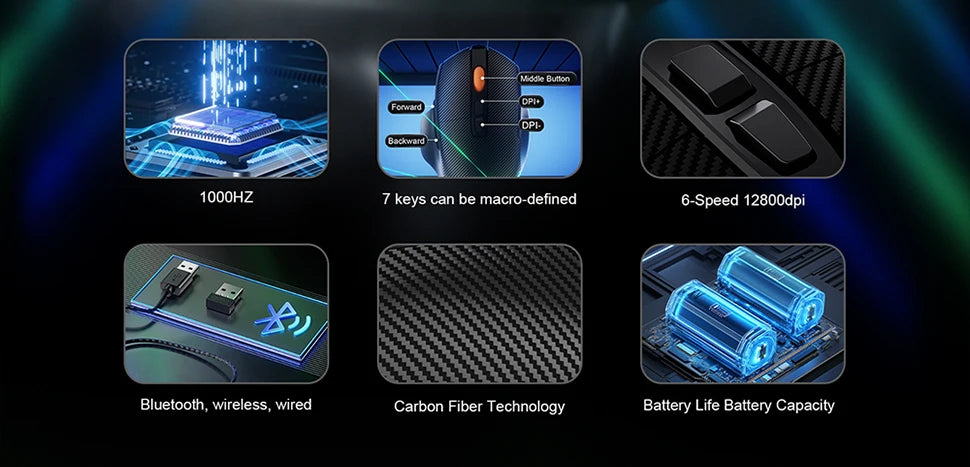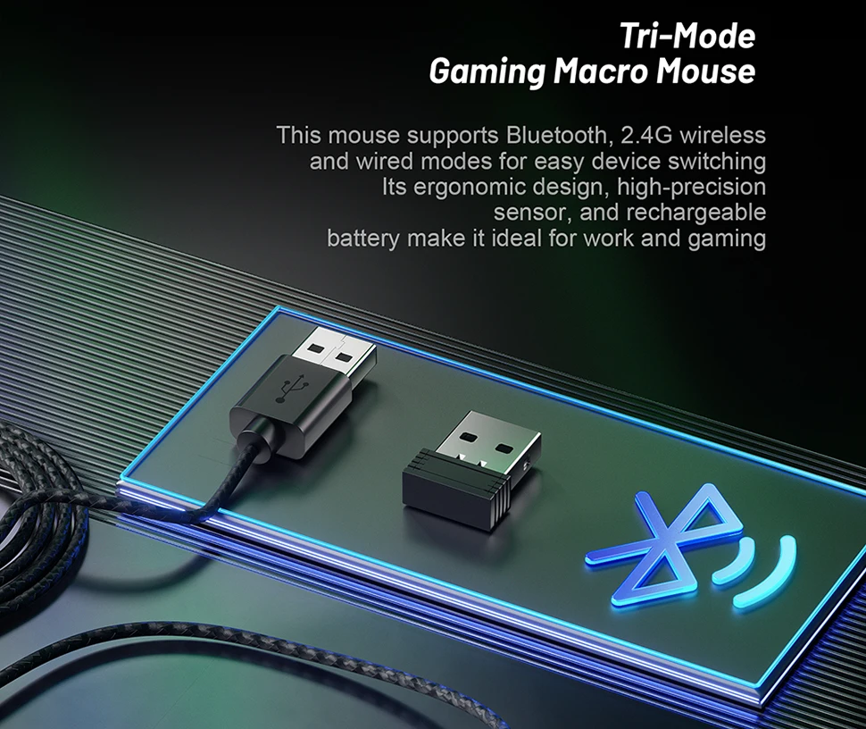 Wireless Game Mouse 12800DPI 1000Hz BT/2.4G/Wired 7 Buttons Macro Mouse for E-sports Ergonomic Design RGB Backlit