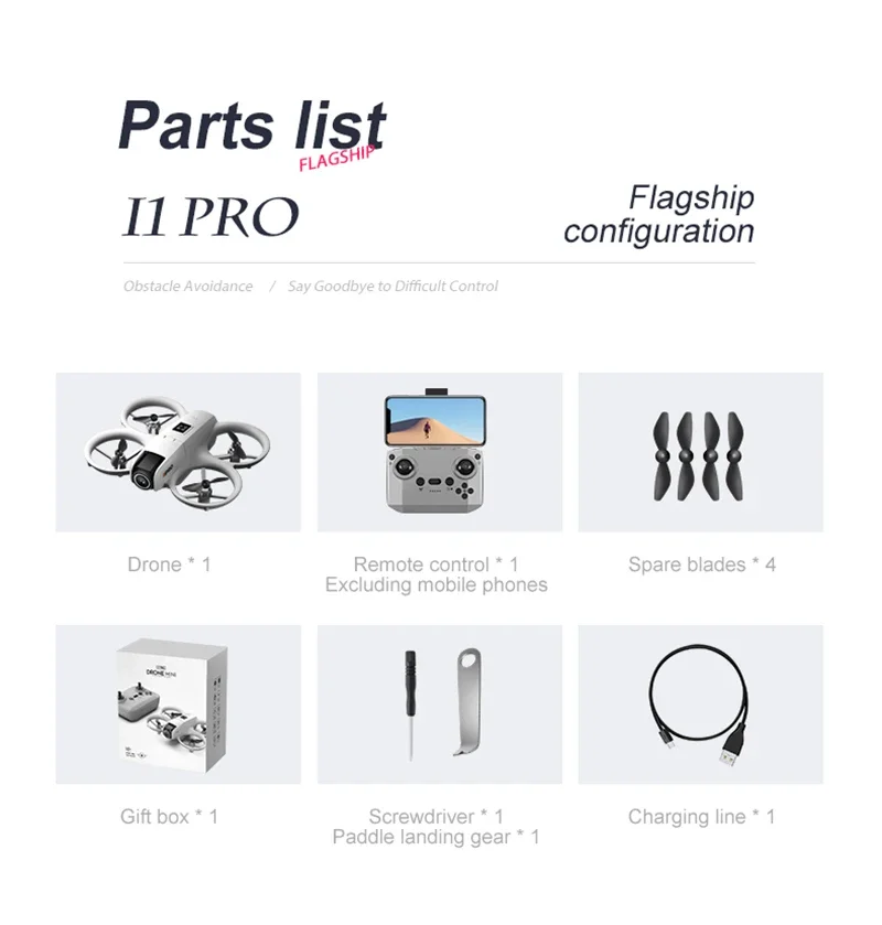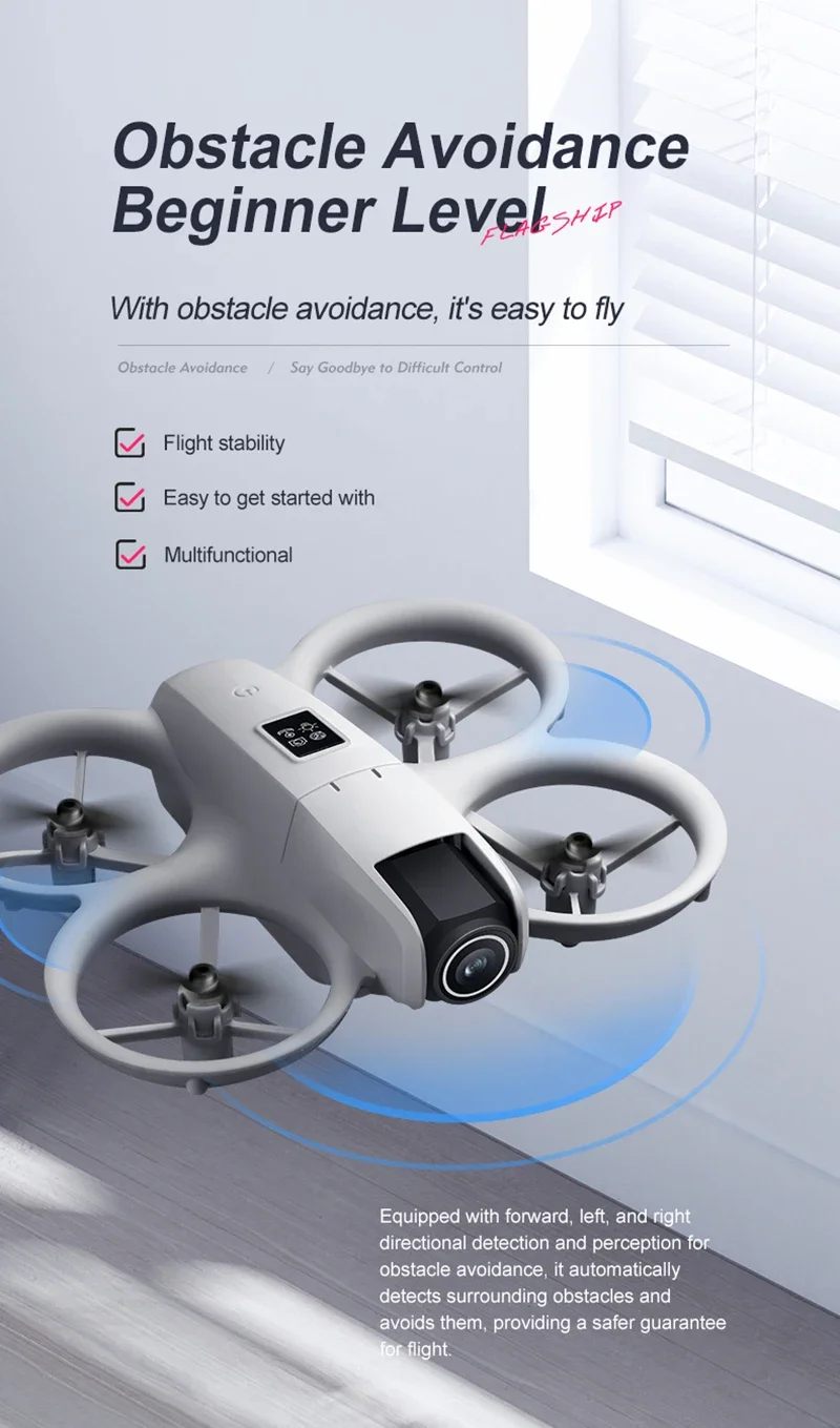 Functions: up/down, forward/backward, left/right turn, lateral flight, headless mode, optical flow positioning hovering, electric dual camera, four-sided obstacle avoidance, 360-degree roll, altitude hold mode, WiFi FPV, with screen control remote control, fuselage power display